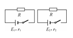 3、选择题 有两个电源1和2,电动势和内电阻分别为E1、r1和E2、r2,阻值R相同的两个电阻分别接到两电源两端时,电阻R消耗的电功率分别是P1、P2,则( )