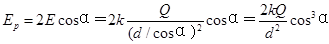 本题解析:⑴负电荷在P点产生场强大小为:,r=d/cosα则: