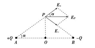 ⑵如图所示,P点场强是正、负电荷在P点产生场强的矢量和,由图得,方向向右。