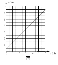 (2)该同学在研究小车运动时实打出了一条纸带,如图乙所示.在纸带上,连续5个点为一个计数点,相邻两个计数点之间的距离见下表,并画出对应的图线(其中横坐标数值表示第几个0.1s,纵坐标对应的该0.1s内物体的位移)如图丙所示.则小车的速度随时间?(选填“是”或“不是”)均匀变化;整个过程中小车的平均加速度为?m/s2.(保留两位有效数字)