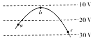 2、选择题 如图所示,三条平行等距的直线表示电场中的三个等势面,电势值分别为10V、20V、30V,实线是一带负电的粒子(不计重力)。在该区域内的运动轨迹,对于这轨道上的a、b、c三点来说,下列选项说法正确的是