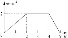 B、加速度图线与时间轴包围的面积表示速度的变化量,则2s内速度变化量为:△v=12×2×2m/s=2m/s,由于初速度为零,故2s末的速度为2m/s,故B正确.
