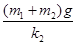 本题解析:整个系统处于平衡状态时,以m1和m2整体为研究对象,由平衡条件得:k2弹簧的弹力是:k2x1=(m1+m2)g,当m1被提离上面的弹簧时,k2弹簧的弹力是:k2x2=m2g,所以木块m2移动的距离是:x1-x2=