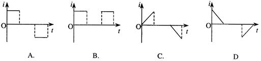 4、选择题  有一较小的三角形线框abcab边与磁场边界平行,线框底边bc的长度小于磁场的宽度,现使此线框水平向右匀速穿过磁场区域,运动过程中始终保持速度方向与ab边垂直.设电流逆时针方向为正,则下列各图中表示线框在上述过程中感应电流随时间变化的规律正确的是:
