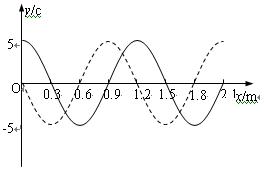 (2)(10分)如图所示,实线和虚线分别是沿x轴传播的一列简谐横波在t=0和t=0.06s时刻的波形图。已知在t=0时刻,x=1.5m处的质点向y轴正方向运动。