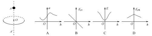 1、选择题 如图所示,一半径为R的均匀带正电圆环水平放置,环心为O点,质量为m的带正电的小球从O点正上方h高的A点静止释放,并穿过带电环,关于小球从A到A关于O的对称点A′过程加速度(a)、重力势能(EpG)、机械能(E)、电势能(Ep电)随位置变化的图象一定错误的是(取O点为坐标原点且重力势能为零,向下为正方向,无限远电势为零)