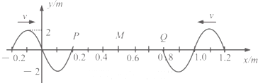 5、计算题 一列横波在t时刻的波形如图所示,振幅为1 cm,已知质点M开始振动的时间比质点N迟0.1 s,两质点的平衡位置相距2 cm,此时刻质点,N的运动方向如何?质点M从此时刻起经0.6 s相对平衡位置的位移多大?在0.6 s时间内波向前传播的距离是多少?