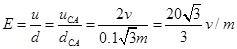 本题解析:匀强电场中任意一条线段中点电势等于两端点电势平均值,因此AC的中点G的电势为2v。而B点电势也是2v,所以BG的连线就是等势面,根据几何关系,BGE共线,所以E点电势也是2v,AF和DC与BE平行,因此都是等势面,所以D点电势3v,F点电势1v。电场线与等势面垂直,且从高电势指向低电势,所以电场线沿CA方向。电场强度答案A错B对。电荷量为