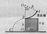 2、选择题  如图所示,半径为R、圆心角为60?的光滑圆弧槽,固定在高为h的平台上,小物块从圆 弧槽的最高点A静止开始滑下,滑出槽口 B时速度水平向左,小物块落在地面上C点, B、C两点在以O2点为圆心的圆弧上,02在B点正下方地面上,则