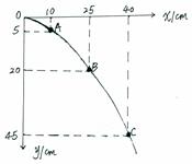 5、实验题  右图所示为某次实验所描绘平抛小球的运动轨迹,抛出点不一定在O点,A、B、C三点的坐标为A(x1=10 cm,y1=5cm)、B(x2=25cm,y2=20cm)、C(x3=40cm,y3=45cm).则?