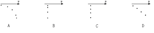 1、选择题  如下图所示,一架飞机水平地匀速飞行,飞机上每隔1s释放一个铁球,先后共释放4个,若不计空气阻力,则落地前四个铁球在空中的排列情况是?