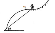 3、选择题  在2014年索契冬奥会中国代表团收获3金4银2铜。在自由式滑雪比赛中,运动员在较高的雪坡上滑到某一弧形部位处,沿水平方向飞离斜坡,在空中划过一段抛物线后,再落到雪坡上,如图所示。若雪坡的倾角为θ,飞出时的速度大小为v0,则以下说法错误的是