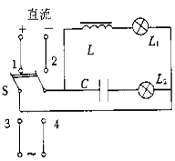 2、选择题 某同学在研究电容、电感对恒定电流与交变电流的影响时,采用了图所示的电路,其中L1、L2是两个完全相同的灯泡,已知把开关置于3、4时,电路与交流电源相通,稳定后的二个灯泡发光亮度相同,则同学在如下操作中能观察到的实验现象是(?)