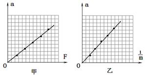图线分别如图甲、乙所示,由图可得出的结论是:加速度a跟合外力F成___________比,跟质量m成____________比。