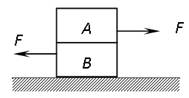 5、选择题 如图,两个物体A、B的质量均为1kg,各接触面间的动摩擦因数均为0.3,同时有F=1N的两个水平力分别作用在A、B上,则地面对物体B、B对物体A的摩擦力分别为