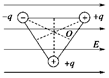 4、选择题  (2009·皖南八校一模)电荷量分别为+q、+q和-q的三个带电小球,固定在边长为a的绝缘三角形框架的三个顶点处,并置于场强为E的匀强电场中,如图所示.若此三角形绕穿过其中心O垂直于三角形所在平面的轴顺时针转过120°,则在此过程中电场力做功的大小为                                                                                                                                                                                               (  )