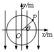 1、选择题  如图所示,在xOy平面内有一个以O为圆心、半径R=0.1m的圆,P为圆周上的一点,O、P两点连线与x轴正方向的夹角为θ。若空间存在沿y轴负方向的匀强电场,场强大小E=100V/m,则O、P两点的电势差可表示为( ? )