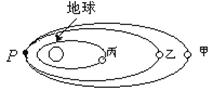 4、选择题 地球赤道上的重力加速度为g,物体在赤道上随地球自转的向心加速度为a.卫星甲、乙、丙在如图所示的三个椭圆轨道上绕地球运行,卫星甲和乙的运行轨道在P点相切.不计阻力,以下说法正确的是(?)