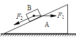 3、选择题 如图所示,滑块B放在斜面体A上,B在水平向右的外力F1,以及沿斜面向下的外力F2共同作用下沿斜面向下运动,此时A受到地面的摩擦力水平向左。若A始终静止在水平地面上,则下列说法中正确的是
