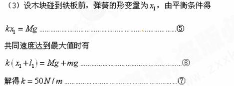 (2)木块和铁板以共同速度运动以后,它们和弹簧组成的系统机械能守恒,设弹簧的弹性势能增加了