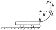 2、计算题 如图所示,放在水平面上的小车上表面水平,AB是半径为R的