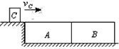 2、填空题 两块厚度相同的木块A和B,紧靠着放在光滑的水平面上,其质量分别为mA=0.5kg,mB=0.3kg,它们的下底面光滑,上表面粗糙;另有一质量mC=0.1kg的滑块C(可视为质点),以vC=25m/s的速度恰好水平地滑到A的上表面,如图所示,由于摩擦,滑块最后停在木块B上,B和C的共同速度为3.0m/s,则木块A的最终速度vA=____________m/s,滑块C离开A时的速度vC′=____________m/s。