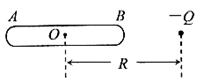 3、选择题 如图,一个枕形导体AB原来不带电。将它放在一个负点电荷的电场中,点电荷的电量为Q,与AB中心O点的距离为R。由于静电感应,在导体A、B两端分别出现感应电荷。当达到静电平衡时,导体A、B两端的电势