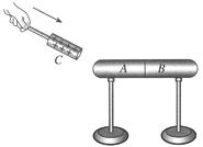 3、实验题 如图,一对对置的枕形导体A和B分别安放在两根绝缘支柱上,AB彼此接触,操作如下: