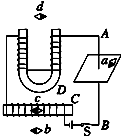 对于U形螺线管左端相当于N极,右端相当于S极,故d磁针的方向错误,