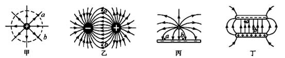 C.丙图:点电荷与带电平板形成的电场中平板上表面的a、b两点