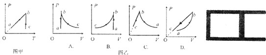 3、简答题 (1)如图甲所示,P-T图上的a→b→c表示一定质量理想气体的状态变化过程,这一过程在P-V图上的图线应是图乙中的(P、V和T分别表示气体的压强、体积和热力学温度)