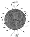4、选择题 地球是个大磁体,如图所示的地球模型图中,上方是地理北极,下方是地理南极,带箭头的虚线表示地磁场的磁感线,a、b是北极上方的两个点,距地面高度分别为ha和hb,且ha>hb,则a、b两点地磁场的磁感应强度大小关系为( )