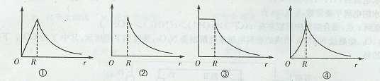 1、选择题 如图所示,坐标原点O都表示一半径为R的带正电的实心金属球的球心位置,横坐标表示到球心的距离,纵坐标表示带电金属球产生的电场的电势或电场强度大小,坐标平面上的线段及曲线表示电场强度大小或电势随距离r变化的关系,选无限远处的电势为零,关于纵坐标的说法正确的是?