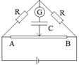 5、选择题 在图示电路中,两定值电阻的阻值均为R,AB是一根粗细均匀的电阻丝,电源电动势为E,当滑片自B向A滑动的过程中,流过电流计的电流方向为(?)