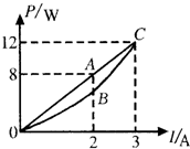 3、简答题 如图所示,直线OAC为某电源的总功率P随电流I变化的规律,曲线OBC为该电源内部热功率Pr随电流I变化的规律,A、B对应的横坐标为2A.精确地求出线段AB所对应的外电路的电阻及其功率多大.