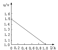 5、填空题 某同学用伏安法测量一只干电池的电动势和内阻得出如右图所示的U-I图,从U-I图可知该干电池的电动势E=?V,内阻r=?Ω。