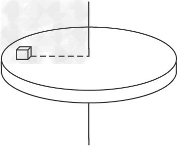5、填空题 如图所示,一木块放于水平转盘上,与转轴的距离为r,若木块与盘面间的最大静摩擦力是木块重力的μ倍,为使木块不与转盘发生相对移动,转盘转动的角速度的最大值是________________.
