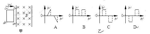 3、选择题 如下图甲所示,一个由导体做成的矩形线圈abcd,以恒定速率v向右运动,从无场区进入匀强磁场区,磁场宽度大于矩形线圈的宽度da,然后出来,线圈平面始终与磁场垂直。若取逆时针方向的电流为正方向,那么乙图中正确地表示回路中电流与时间关系的是