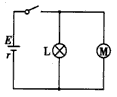 4、计算题 如图所示,电源电动势E=10 V,内阻r=0.5 Ω,“8V 16 W”的灯泡L恰好能正常发光,电动机M绕线的电阻R0=1 Ω,求: