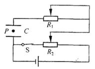 2、选择题 如右图所示电路,开关S原是闭合的,当R1、R2的滑片刚好处于各自的中点位置时, 处于真空中的电容器C的两个水平极板间的带电尘埃P恰好处于静止状态.下列做法中能使尘埃P加速向上运动的是