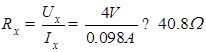 本题解析:因为串联的电阻R0与RV相同,电压表示数为2V,则Rx两端的电压为4V;Rx的电流: