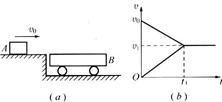 2、选择题 如(a)图表示光滑平台上,物体A以初速度v0滑到上表面粗糙的水平小车上,车与水平面间的动摩擦因数不计,(b)图为物体A与小车的v-t图像,由此可求出( ?)