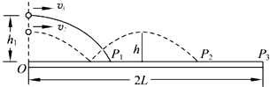 (1)若球在球台边缘O点正上方高度为h1处以速度v1水平发出,落在球台的P1(如图实线所示),求P1点距O点的距离s1;