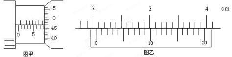 2、实验题 用螺旋测微器测圆柱体的直径时,示数如图甲所示,此示数为?mm,用游标卡尺测量某物体的厚度时,示数如图乙所示,此示数为?m.