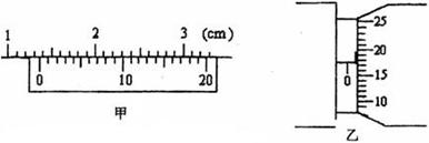 3、实验题 游标卡尺和螺旋测微器是两种常用的测量长度的精密仪器。如图甲所示的游标卡尺,主尺的最小分度是1mm,游标上有20个小的等分刻度,图示状态的读数是___? _____mm;用如图乙所示螺旋测微器测量一根金属丝的直径的读数是____________mm。