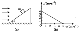 3、计算题 如图(a)所示,质量m=1 kg的物体沿倾角θ=37°的固定粗糙斜面由静止开始向下运动,风对物体的作用力沿水平方向向右,其大小与风速v成正比,比例系数用k表示,物体的加速度a与风速v的关系如图(b)所示, (sin37°=0.6,cos37°=0.8,g取10 m/s2)求: