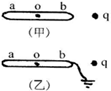 4、选择题 如图(甲)所示,ab为原不带电的细导体棒,q为一带正电的点电荷,当达到稳定后,导体棒上的感应电荷在棒内O点处产生的场强大小为E1,O点的电势为U1,现用一导线把导体棒的b端接地,其他条件不变,如图(乙),待稳定后,导体棒上的感应电荷在棒内O点处产生的场强大小为E2,O点的电势为U2,经分析后可知