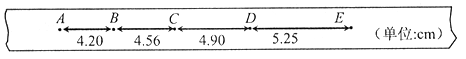 4、实验题 张军在做“测定小车匀变速直线运动的加速度”的实验中,用打点计时器记录了小车的运动情况。他挑选出的纸带如图所示。图中A、B、C、D、E是按打点先后顺序依次选取的计数点,两个相邻的计数点之间的时间间隔均为0.10s。则计数点C对应的瞬时速度为______m/s,小车运动的加速度是______m/s2(结果保留两位有效数字)。