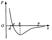 5、选择题 如图所示,甲分子固定于坐标原点O,乙分子位于x轴上,甲、乙两分子间的作用力与两分子间距离的关系如图中曲线所示,F>0为斥力,F<0为引力。a、b、c、d为x轴上四个特定的位置,现将乙分子从a移动到d的过程中,两分子间的分子力和分子势能同时都增大的阶段是