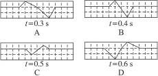 4、选择题 两个不等幅的脉冲波在均匀介质中均以 1.0 m/s的速率沿同一直线相向传播,t=0时刻的波形如图12-6-15甲所示,图中小方格的边长为 0.1 m.则对于图12-6-15乙所示的不同时刻,波形正确的是( )